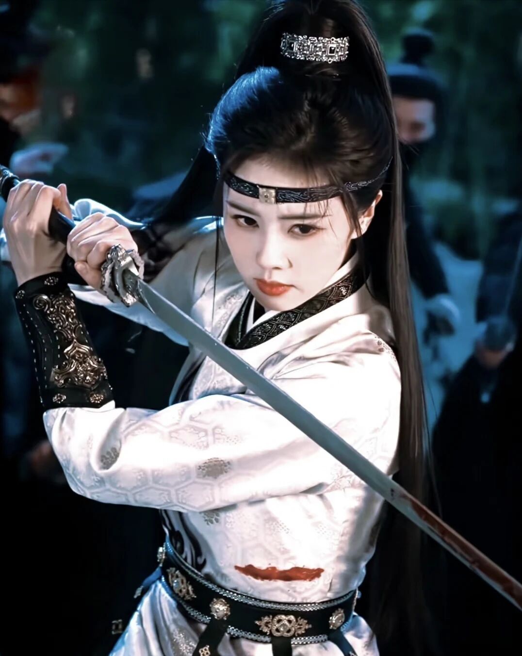 抹额把视线强制锁定在眉眼区域,没有碎发干扰,没有额头抢戏,那双眼睛就成了画面的绝对焦点。