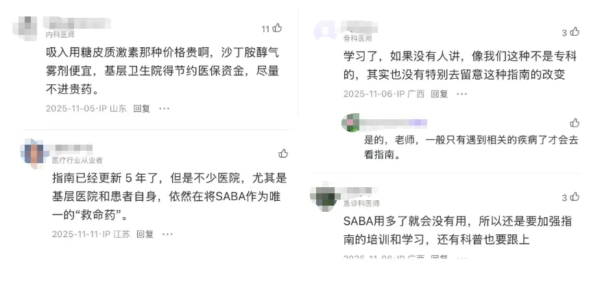 同时医生网友也直言,SABA价格极低,单支仅几十元,且吸入剂型为医保甲类报销。相比之下,新型复方制剂看起来“更贵”。虽然多项研究证实:SABA滥用的经济成本,远高于规范治疗。过量使用导致急性加重、住院、插管,产生的医疗费用是规范用药的数倍。看似省钱,实则因小失大。