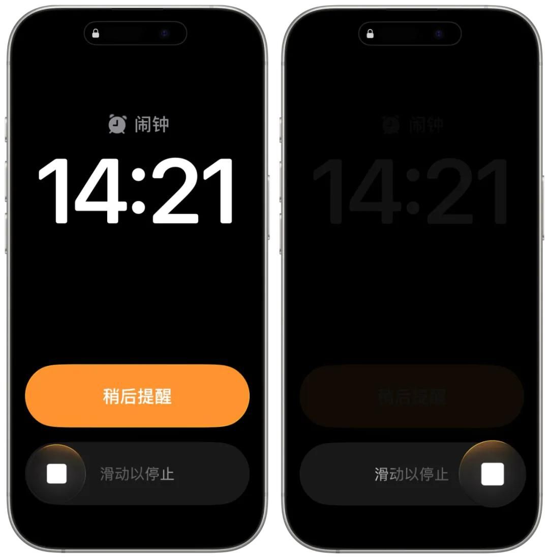 滑动闹钟和计时器开关:闹钟和计时器新增“滑动来解锁”关闭方式,在之前是点击“关闭”按钮才可以停止闹钟,现在改成了滑动才能关闭闹钟,并且加大了闹钟按钮,很大程度减少了误触。