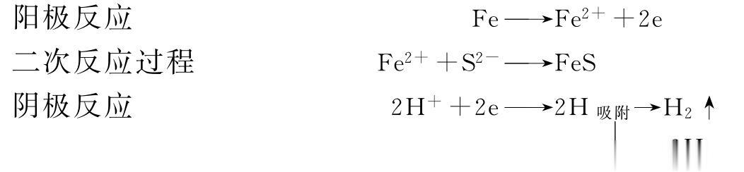钢在硫化氢水溶液中发生电化学腐蚀: