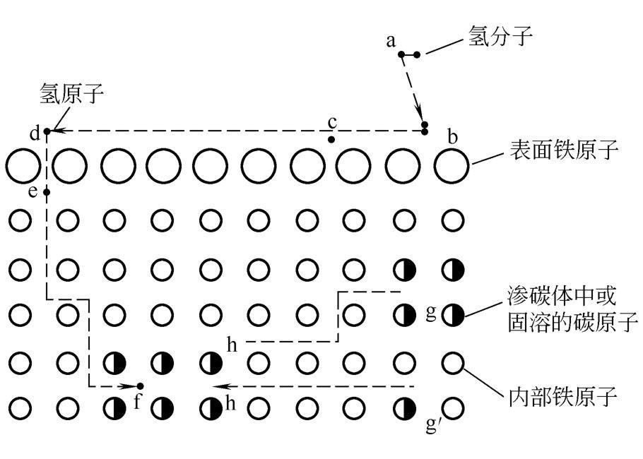 氢腐蚀的历程可用图9来解释。