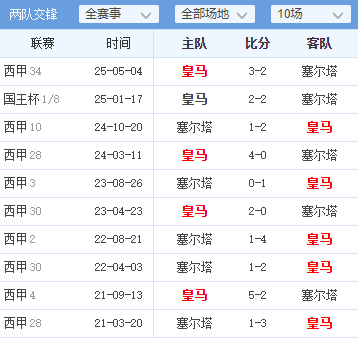 · 历史交锋:对塞尔塔有压倒性优势,塞尔塔自2014年5月以来未在西甲击败过皇马。上一次交手(2025年5月4日,西甲第34轮),皇马主场3-2战胜塞尔塔。