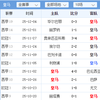 · 历史交锋:处于绝对下风,对皇马已遭遇3连败。