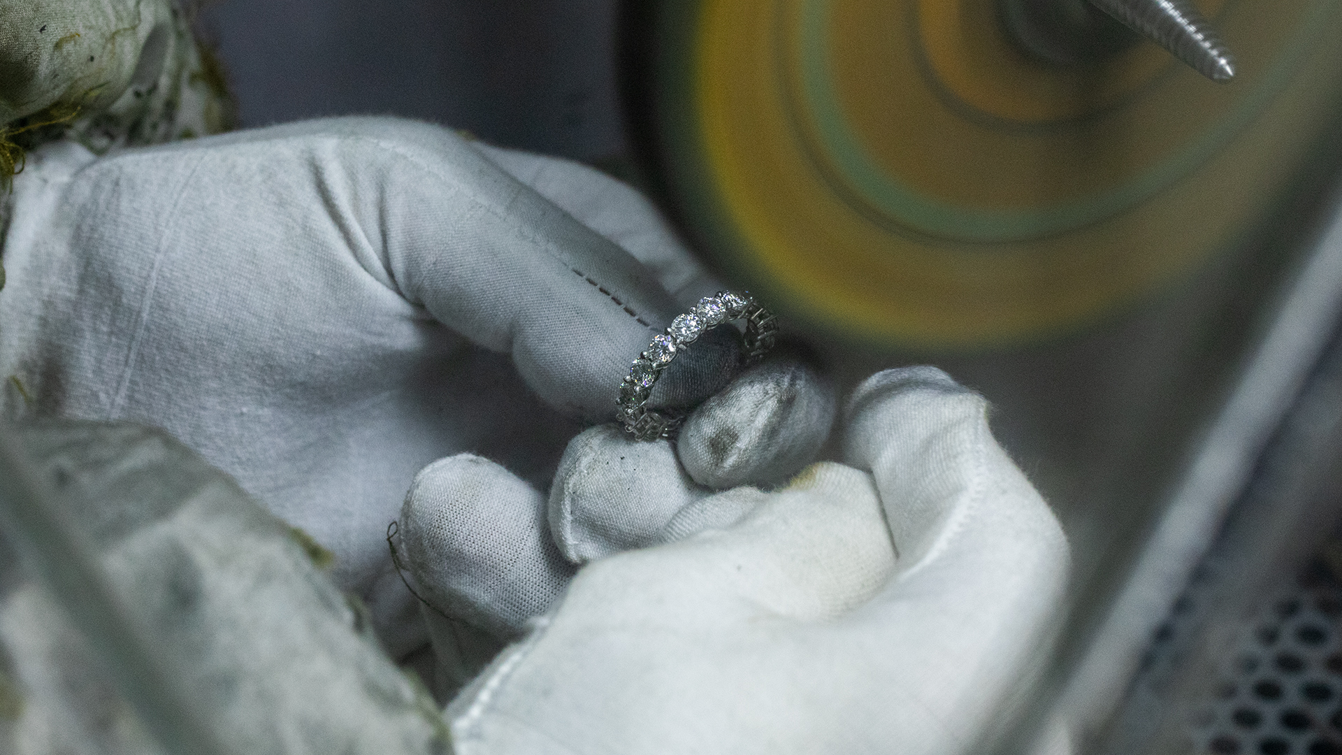 如果说熔铸塑形是“打基础”,那么精细打磨就是“提质感”,这是好首饰最耗费人工、最能体现工艺水准的环节,也是外行最容易忽略的细节。好首饰的打磨,从来不是“简单擦拭”,而是多道工序、反复打磨,力求精益求精。