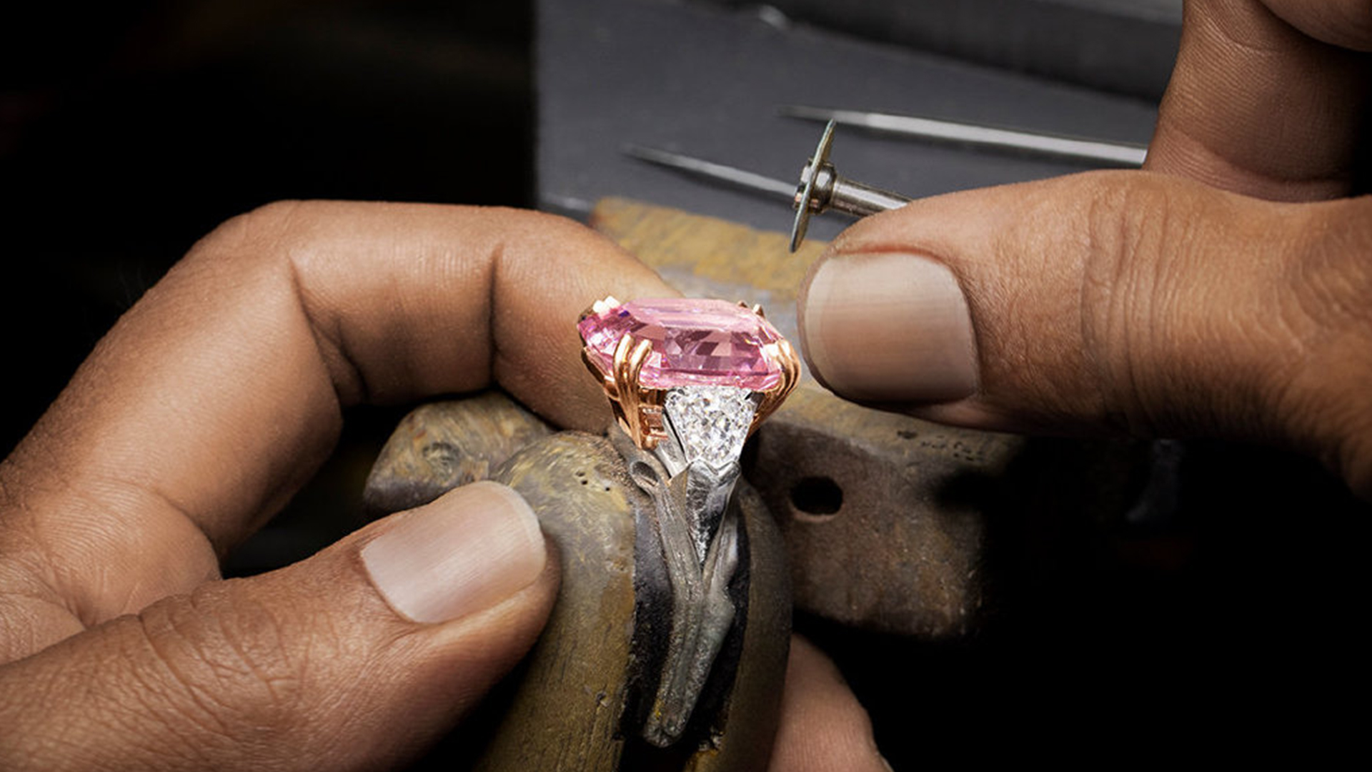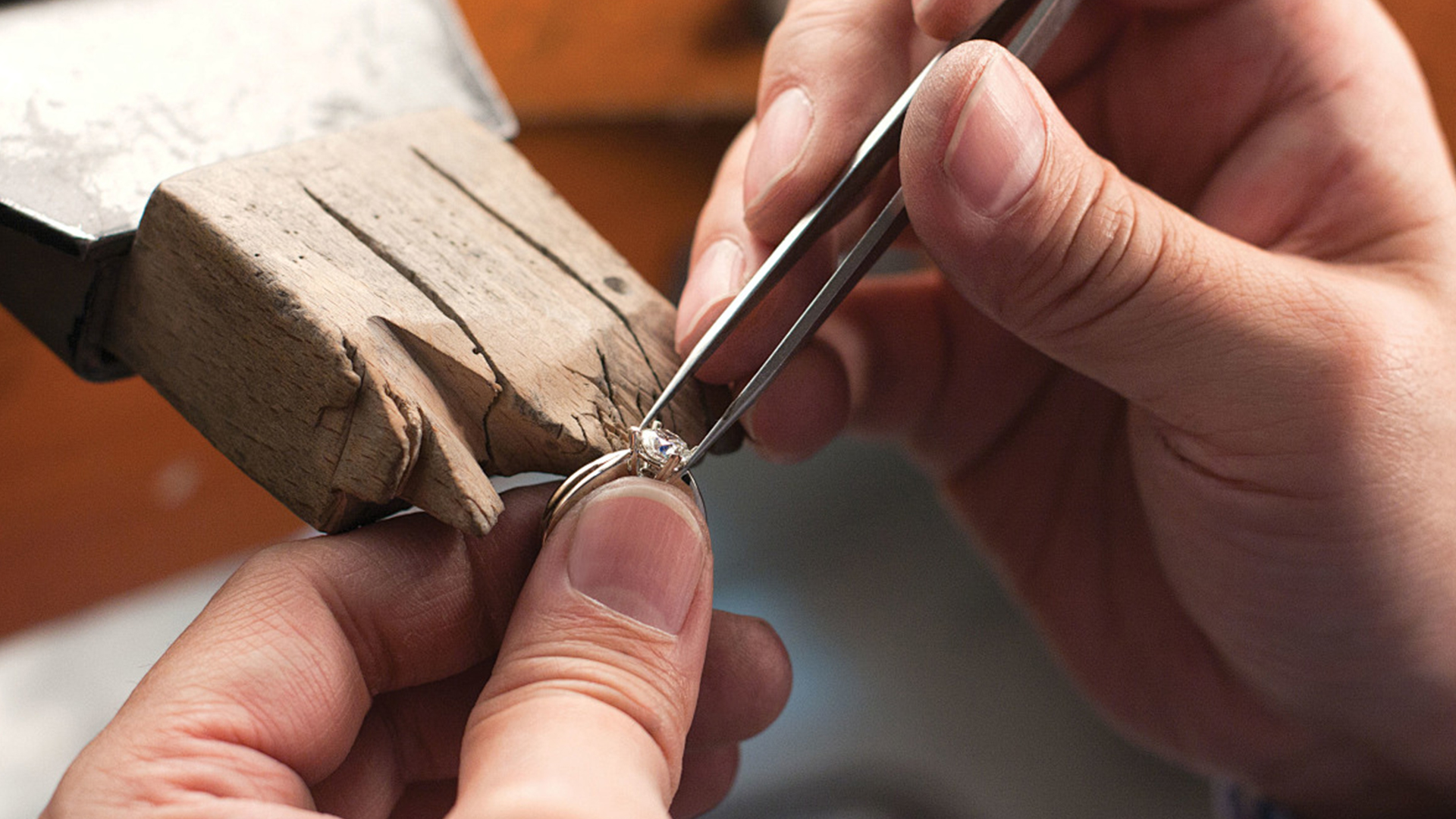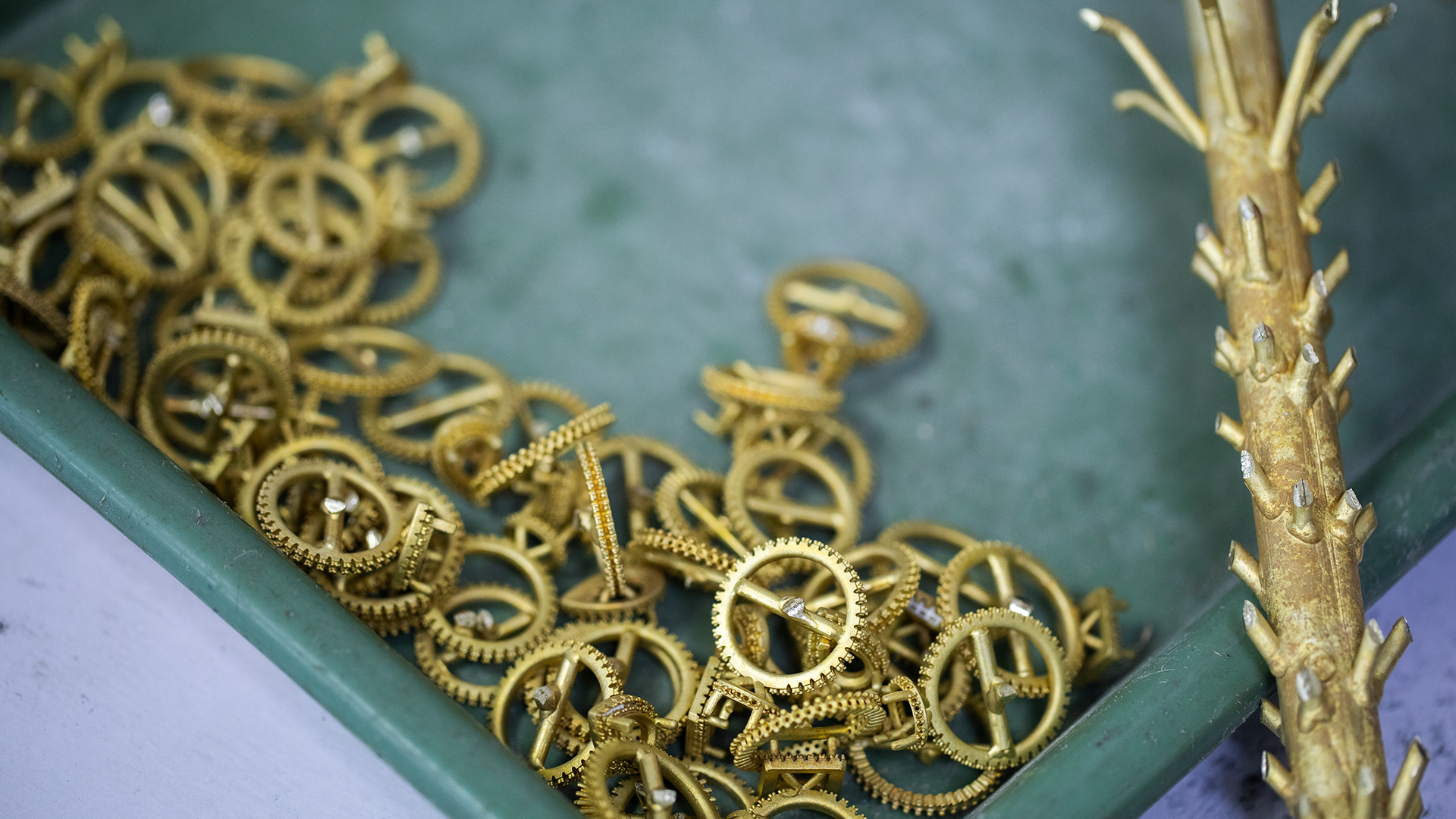 打磨完成后,会根据首饰款式,进入核心工艺环节,主要分为镶嵌、电镀、做旧三种,每一种工艺都有严苛的标准,丝毫不能马虎,否则再好的原料和版型,也无法成为一件好首饰。