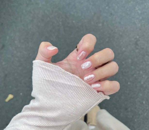 珍珠的尺寸很关键。直径2毫米到3毫米的极细珍珠,刚好嵌在甲面中心或指缘根部,不会超出指甲前缘的视觉边界。单颗点缀在中指或无名指的一个甲面上,其余指甲保持裸色或透感的纯色,就能形成清晰的视觉重心。相比多颗排列,单颗珍珠的留白感更强,反而让短甲显得干净、收拢。