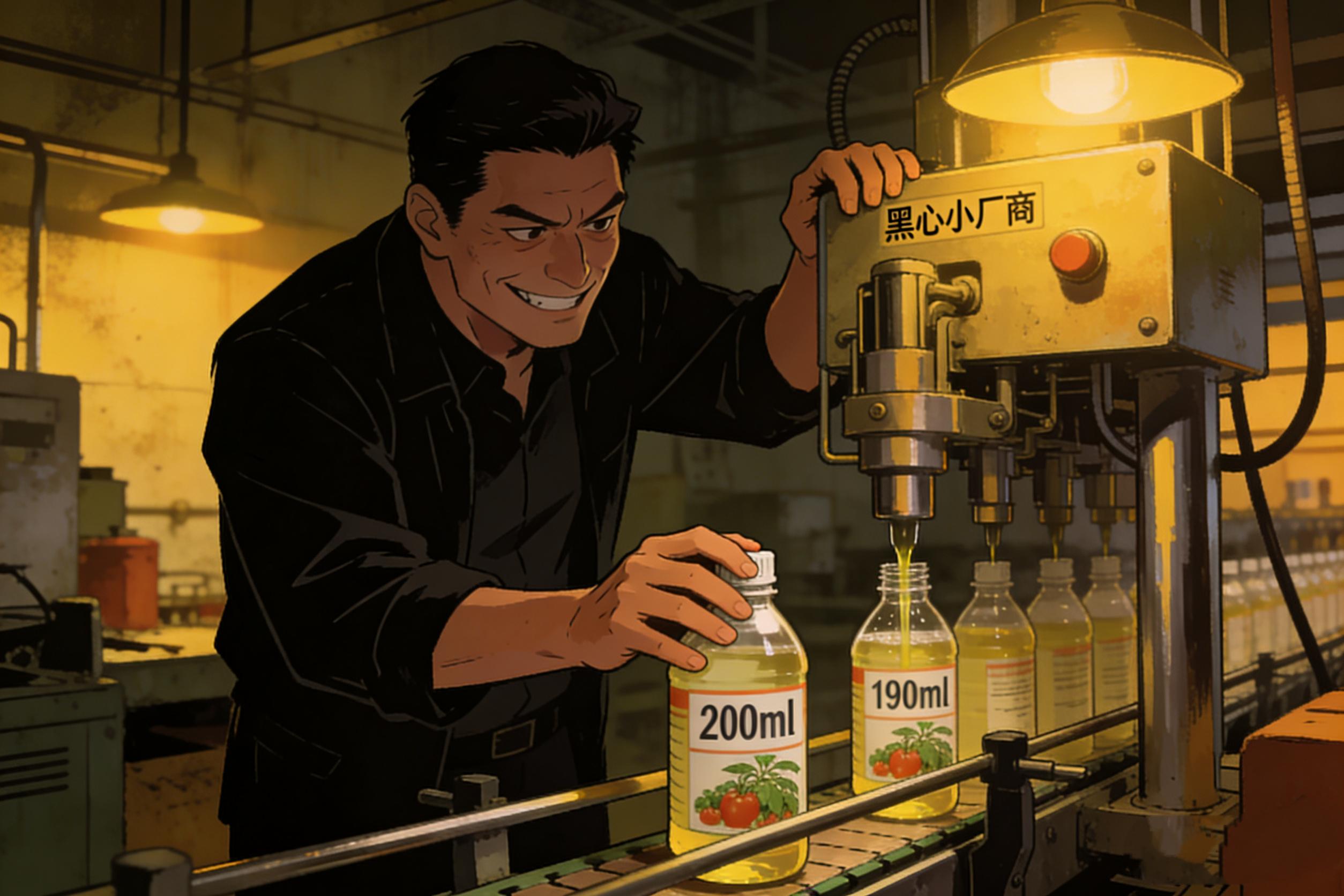 其一:偷工减料,含量重量双双缩水小厂家为什么能把价格压得那么低?说白了,就是没有资源、缺证件,为了省钱不择手段。农药生产是有国家标准的,比如标明20%含量的农药,国家允许有一定的误差范围。正规大厂通常会按照标准足量添加,甚至留有余地,确保药效。但小厂家呢?他们专门卡着国标的下限做,比如20%的含量,他们就敢做成18.5%,只要不被抽检抓到,就能多赚一笔。