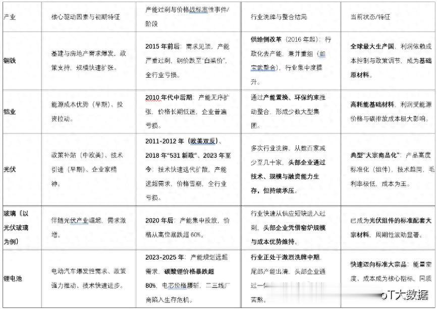 我对钢铁、光伏、玻璃、锂电池及电动汽车五个产业进行了数据推演和阶段划分,其核心规律高度一致。