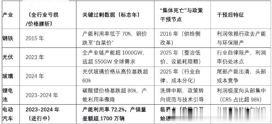 以惨烈洗牌完成行业出清行业最终通过漫长而痛苦的价格战、全行业亏损、企业破产倒闭,并伴随政府的主动干预(如供给侧改革)或被动善后,完成产能出清和集中度提升,幸存者成为微利的“制造业巨头”。