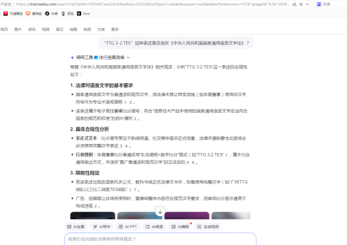 (人智回答)根据《中华人民共和国国家通用语言文字法》相关规定,分析“TTG 3-2 TES”这一表述的合规性如下: