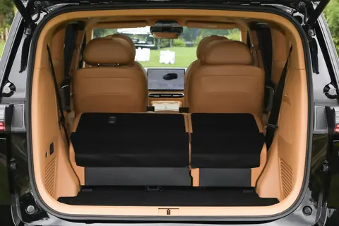 储物空间也很贴心。前排扶手箱能放下 6 瓶矿泉水,中控台下的隐藏格有无线充电功能,手机放上去就能充电;后排座椅旁有 USB-C 接口,支持 60 瓦快充,同事的笔记本电脑没电了,插上后半小时就充了 40%。常规状态下,后备箱能放下 3 个登机箱,放倒第三排座椅后,容积直接涨到 2700 升,露营的帐篷、烧烤架都能轻松装下。
