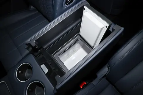 最让我惊喜的是 AR-HUD 功能,导航箭头直接投射在前挡风玻璃上,跟着箭头走就能找到路线,不用频繁低头看中控屏。遇到红灯停车时,我试着用语音控制打开 13 升双门冷暖箱,“帮我把冰箱调到 5℃”,几秒钟后就听到冰箱启动的声音,打开一看,里面的矿泉水已经有点凉了 —— 夏天带家人出门,再也不用担心饮料变热。