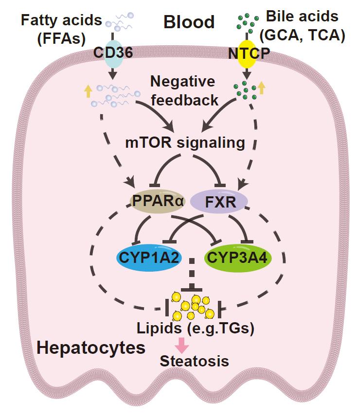 总之,初步机制探索表明,在代谢活跃亚型(MASLD-mSI)中,转运蛋白NTCP和CD36调节引起的肝内低浓度BAs和FFAs,激活mTOR信号,抑制FXR和PPARα活性来维持肝内高浓度的CYP1A2和CYP3A4,缓解肝内脂质积累。