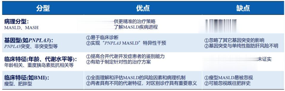 MASLD的异质性是临床诊疗的核心挑战代谢相关脂肪性肝病是以代谢异常相关的肝脂肪变性为特征的慢性肝病,其发病率随着生活方式的改变而迅速上升,儿童和青少年的患病率亦呈增长趋势。MASLD不仅可进展为肝硬化、肝细胞癌,还与慢性肾病、2型糖尿病、心血管疾病以及多种肝外肿瘤密切相关。尽管2024年瑞美替罗和2025年司美格鲁肽相继获批,但二者对MASLD相关肝硬化和MASH的疗效仍十分有限,其根本原因在于MASLD存在高度的临床异质性。这种异质性体现在不同患者的病理机制、疾病表型、自然病程以及对治疗的反应差异显著。既往研究尝试依据病理特征分为MASH与非MASH、依据基因型分为PNPLA3突变型与非突变型、依据临床特征分为瘦型与肥胖型脂肪肝等,但这些分型均未能有效解决MASLD的异质性问题,且临床应用存在诸多不便。
