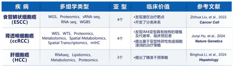 表2. 基于多组学、空间多组学技术能有效区分肿瘤异质性,并实现临床精准分型、精准靶向治疗