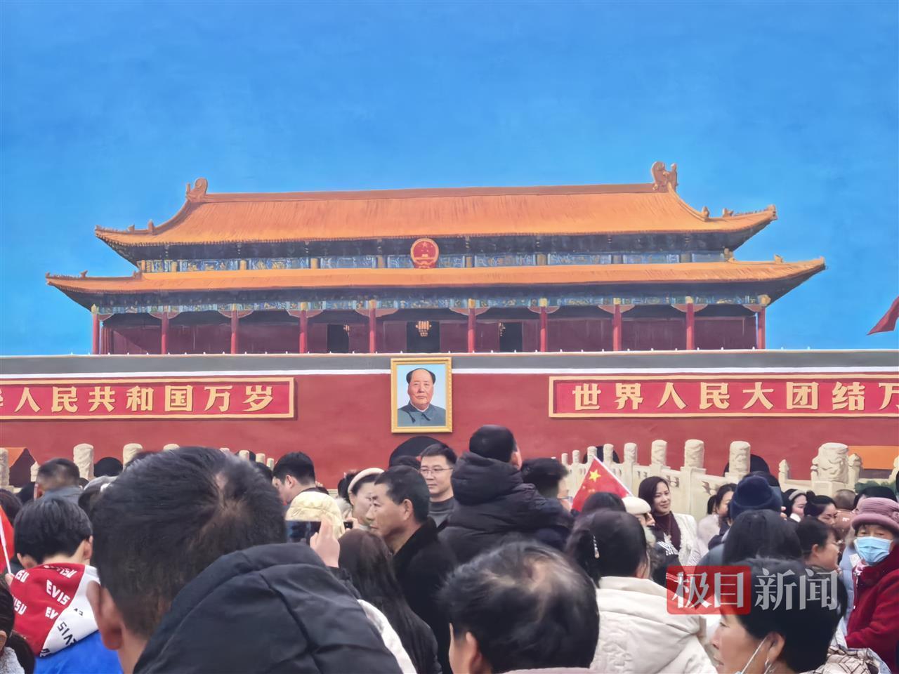 说实话,这一切的热度,都源于村民吴承言耗时5天,绘就18米长、8米高的“天安门”墙画,