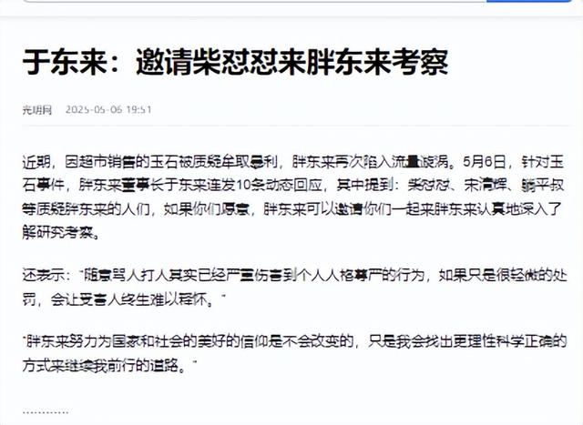 比如前阵子有个叫“柴怼怼”的网红,在网上公开嚷嚷,说胖东来卖玉石是牟取暴利,还把人家的产品贬得一塌糊涂。面对这种指名道姓的抹黑,胖东来可没选择忍气吞声。