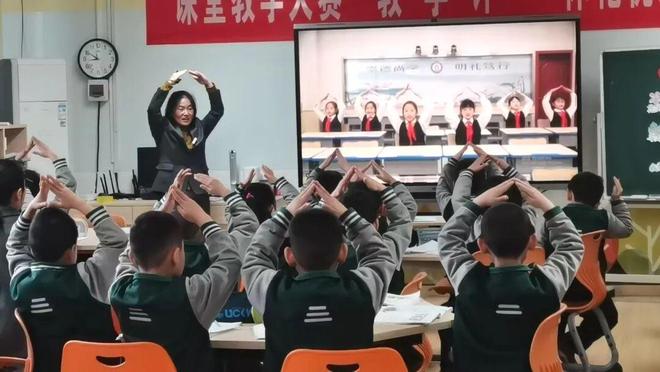 英语课堂,教师利用多媒体和肢体语言营造沉浸式环境,鼓励学生大胆开口、自信表演,在真实语境中提升语用能力。