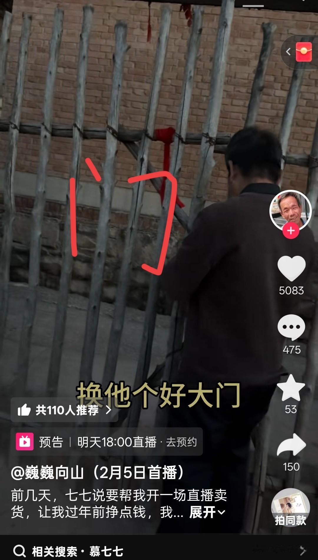 视频中他拍摄了自家的大门,还是那种用“篱笆”式的大门。