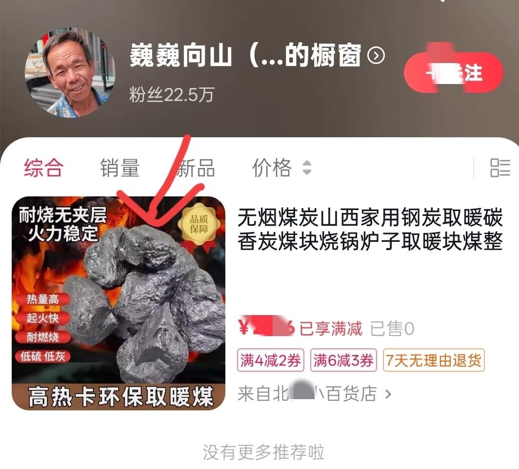 接下来就是重点了,他直播带货卖什么呢?总不能真的只卖那一堆煤炭吧。