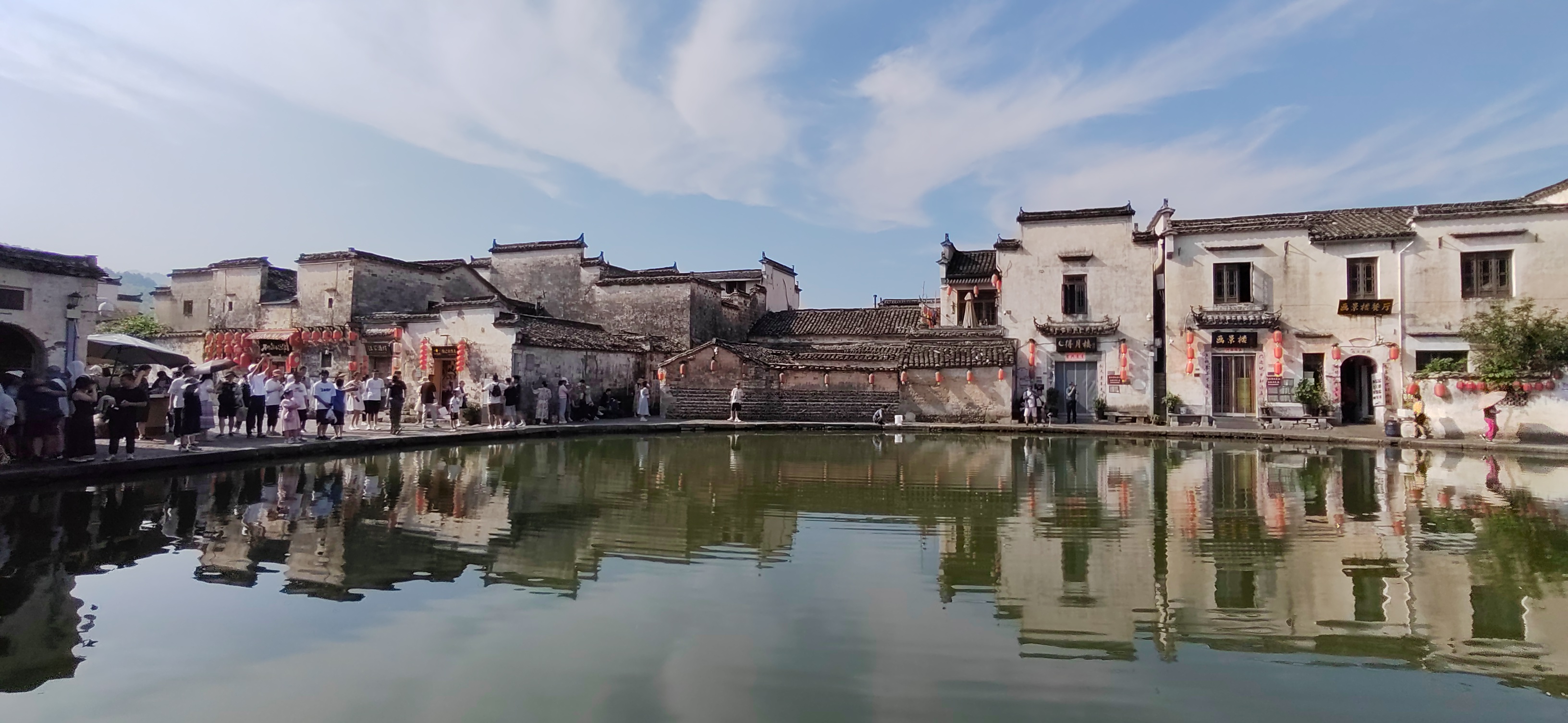 午后漫步南湖,绿荷簇拥着长桥,“南湖书院”的飞檐隐于浓荫间,尽显徽州文脉底蕴。行至承志堂,梁上木雕栩栩如生,“渔樵耕读”“百子闹元宵”等纹样,在光影中诉说着旧时故事,不愧“民间故宫”之名。