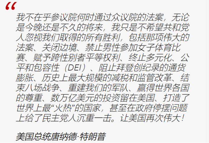 图恩讲话结束后,川普发帖称共和党人应该记住“胜利”,对爱泼斯坦法案的通过“漠不关心”。