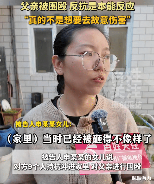 申某良女儿说,当晚对方还说“今晚弄死你们”这样的话,父亲平时就老实不善言辞,虽然他是父亲要保护着妻子和女儿,但他也会害怕,当时拿刀就是本能的反应。