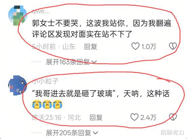 “郭女士不要哭,这波我站你,因为我翻遍评论区发现对面实在站不下了”