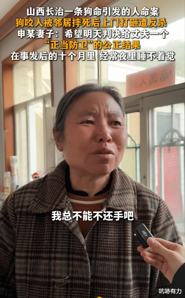 百姓关注采访她时,她称:“申某良的儿子多狠啊!他喝了酒,拿着砖头,把狗砸死,脑浆都砸出来了!”