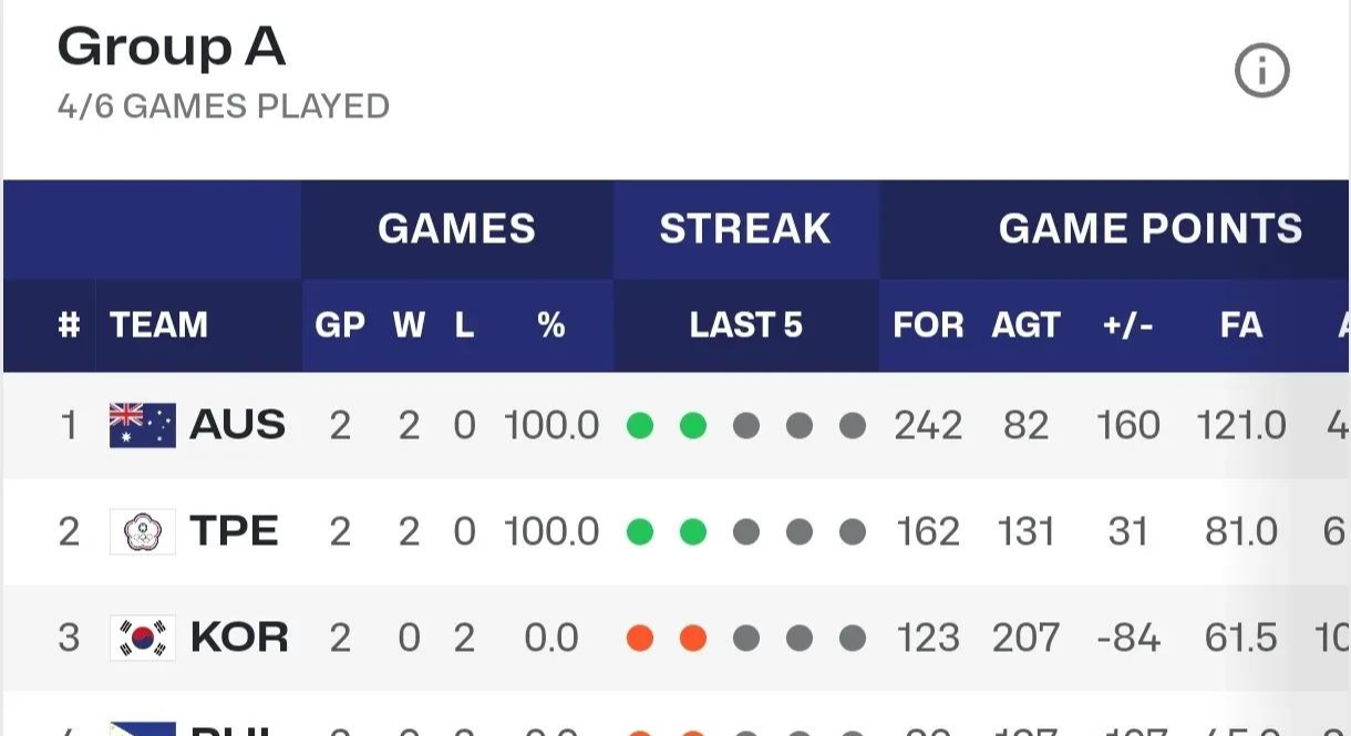 A组最新排名,澳大利亚独角兽,中国台北表现出色首先看A组排名,澳大利亚目前排名第1,中国台北排名第2,韩国第3,菲律宾第4。