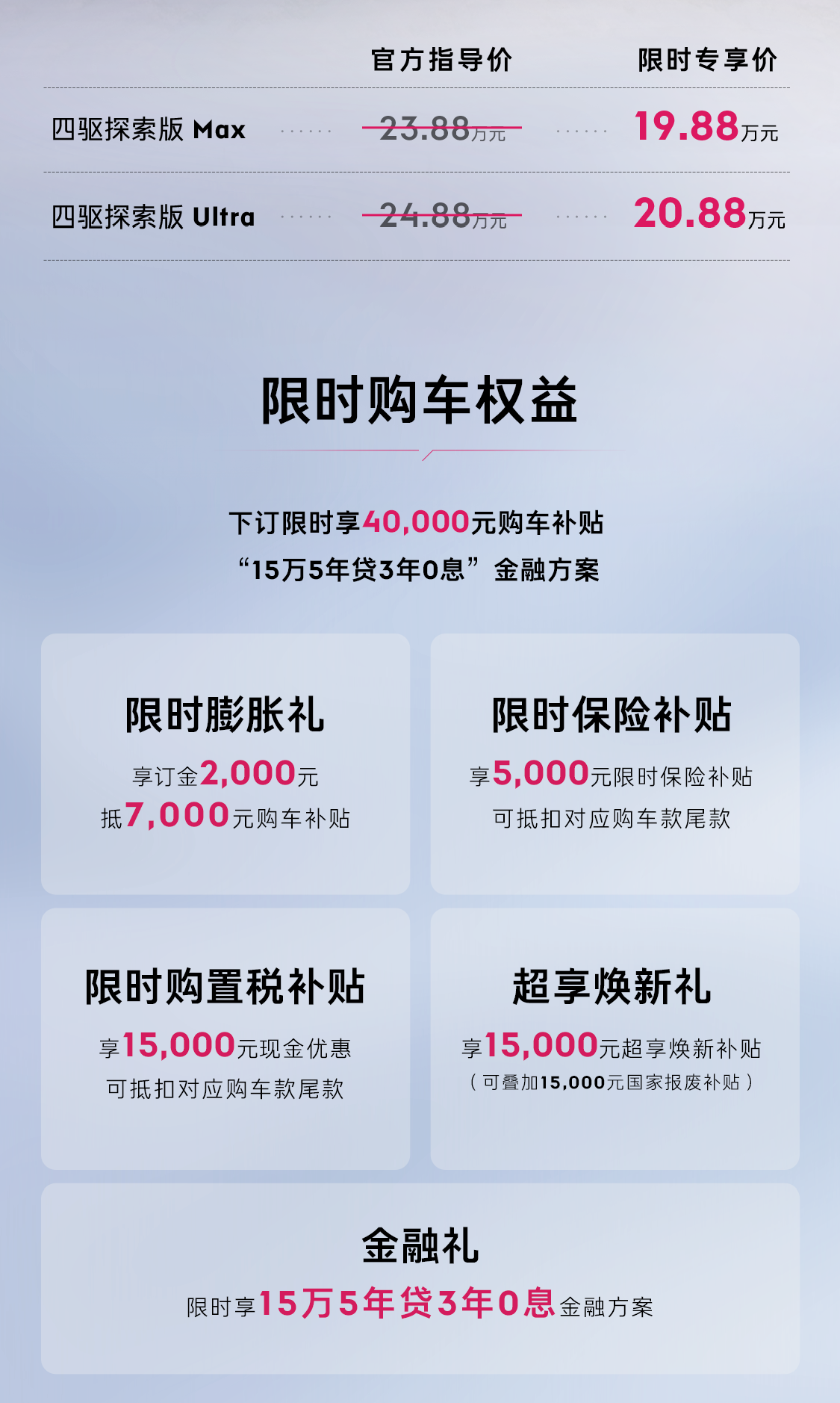 目前,新车推出了限时专享价19.88万元起,这个价格在30万内的中大型SUV市场中,凭借其全时四驱、行政级二排和SPA架构安全等核心卖点,展现出了不错的竞争力。如果你正在寻找一台能陪伴你从城市到远方,既开得畅快又坐得舒服的伙伴,那么这台“逆潮流”而行的领克09四驱探索版,值得你亲自去体验一番。