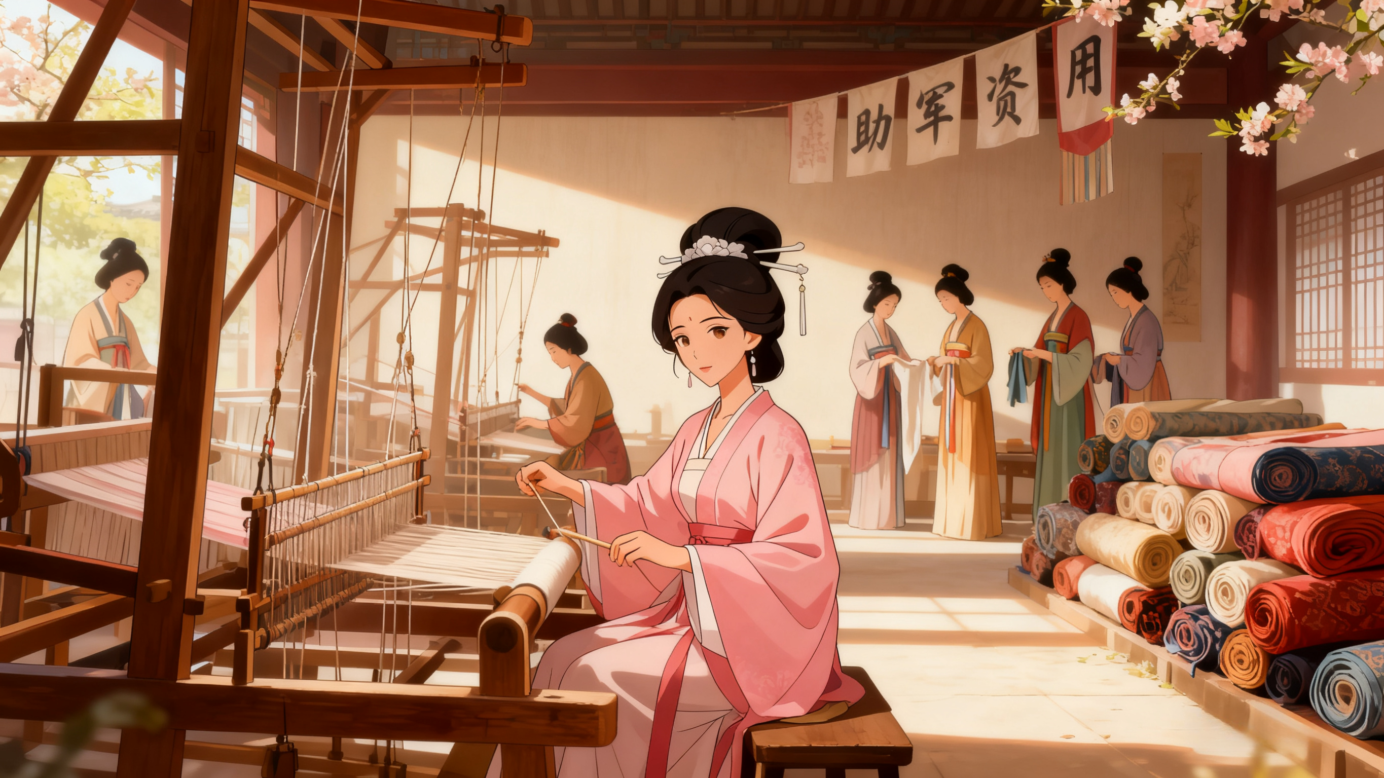 当边疆动荡,匈奴扰边,粮草紧张,她亲自组织后宫女眷纺纱织布,所得布匹尽数送往前线,供将士制衣。她还设立“内织坊”,培训宫婢技艺,既减轻财政负担,又避免奢靡之风蔓延。
