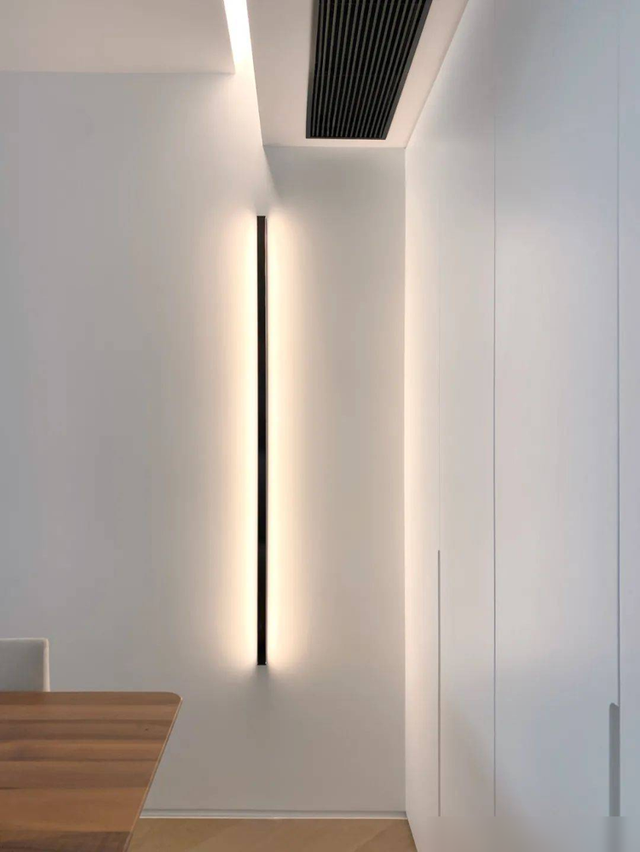 设计师在沟通中发现业主未来可能有家庭人口变化,于是在客餐厅做"减法设计":少用固定装饰,多留软装调整空间;在主卧把衣帽间外移,腾出超大主卫;长廊用线性灯做折角设计,搭配极窄边框门——这些细节不是为了追赶当下的装修潮流,而是让房子能"跟着生活成长"。