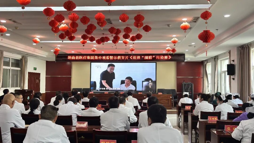 为深入贯彻全面从严治党要求,持续深化“清廉医院”建设,筑牢全集团干部职工拒腐防变思想防线,1月26日,垣曲县医疗集团召开2026年第一季度警示教育大会。集团领导班子成员出席会议,县医院全体中层干部共计70余人参加会议。