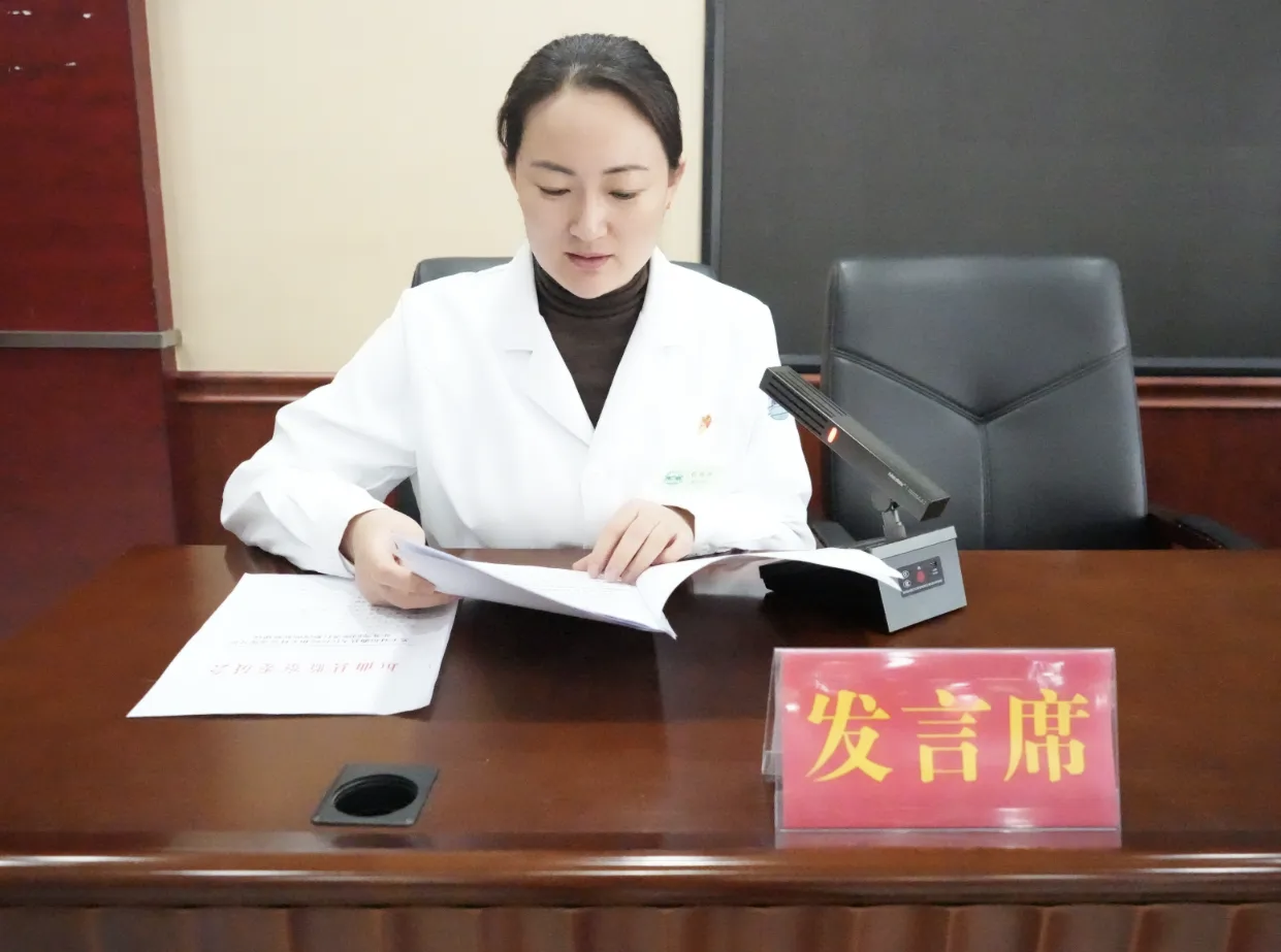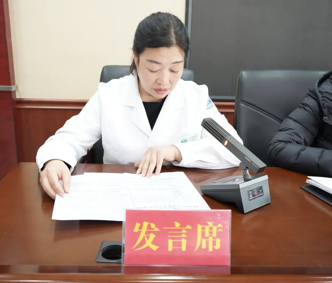 ▲医保科主任王春霞传达有关医保问题整改整治实施方案。
