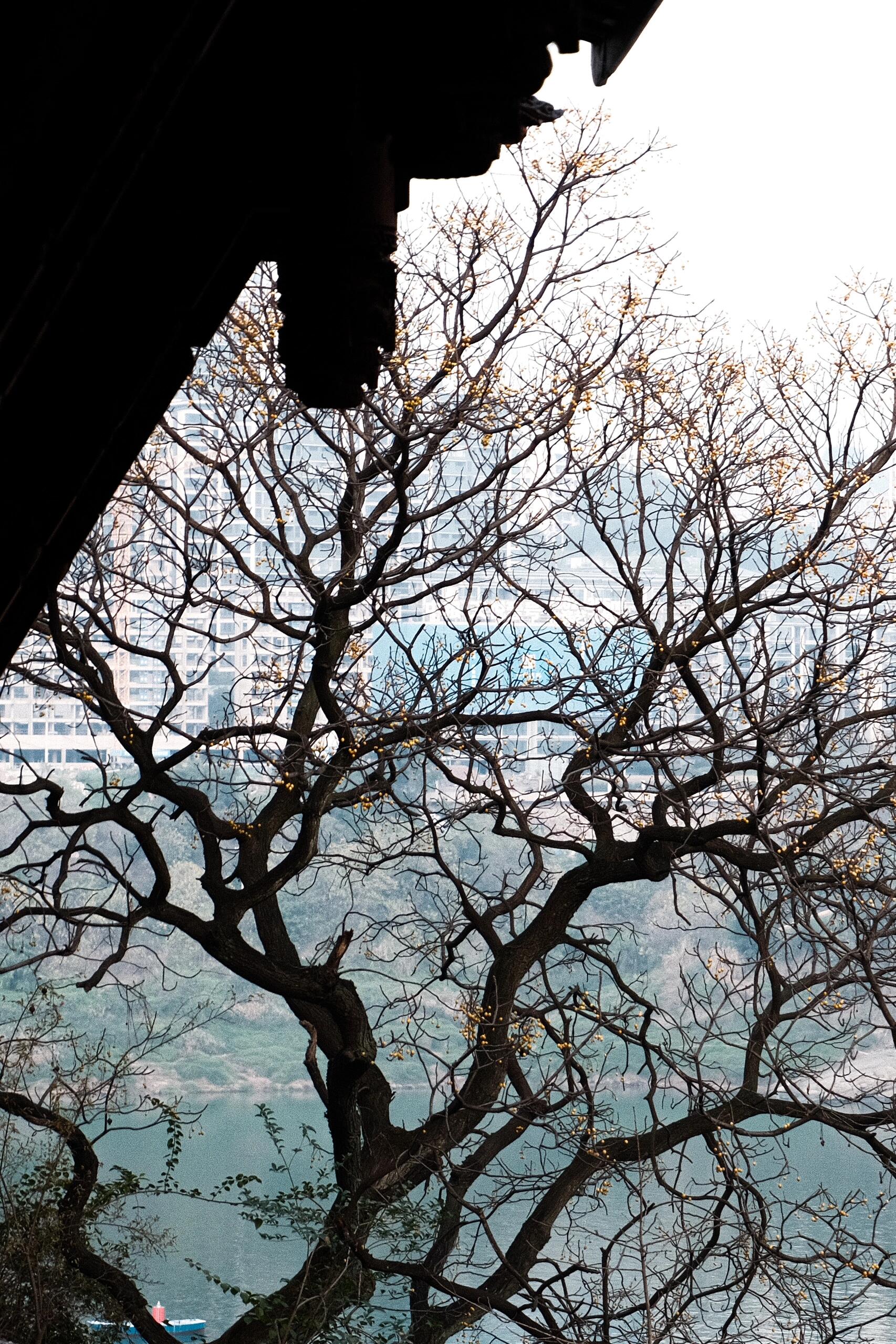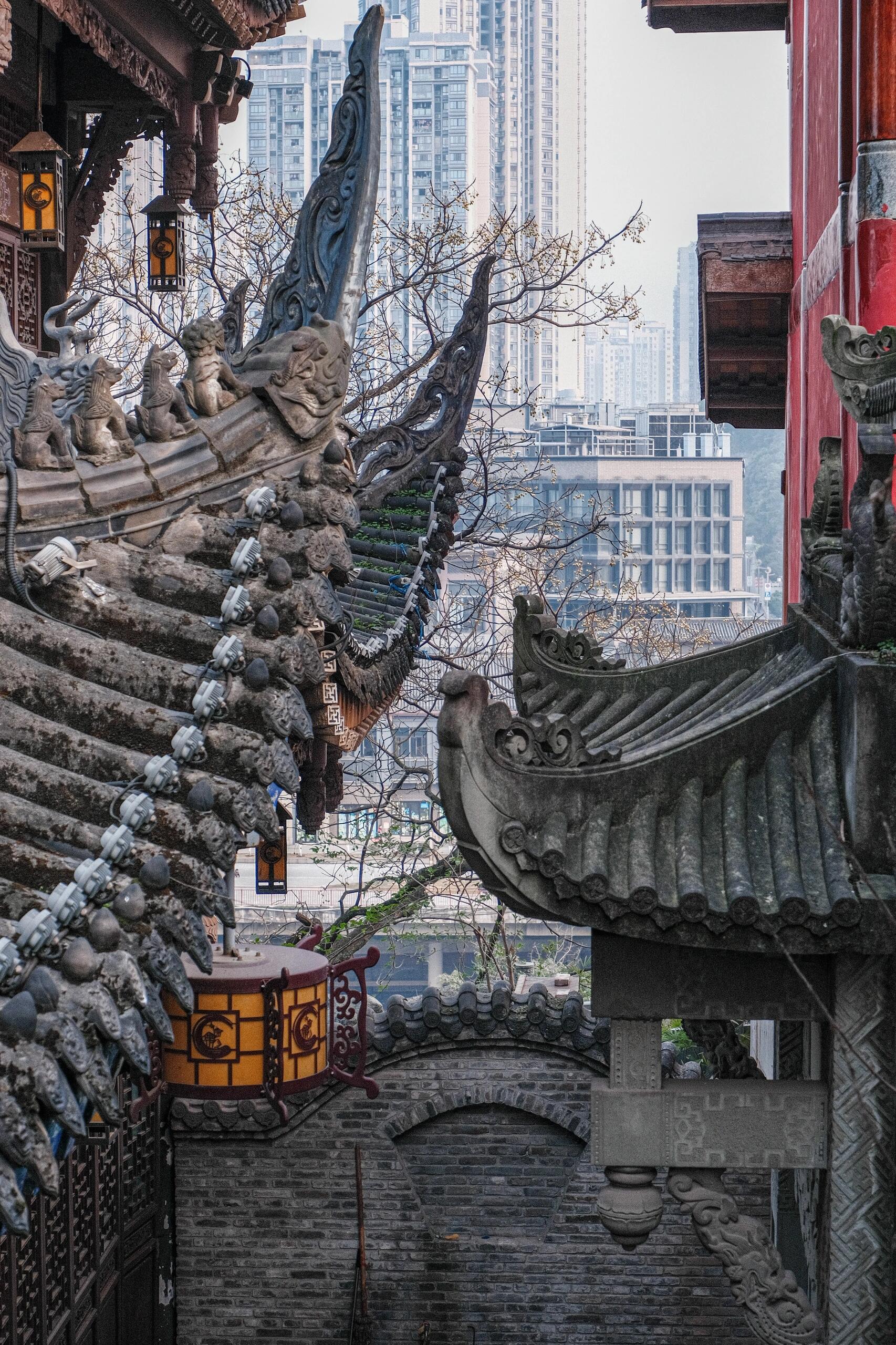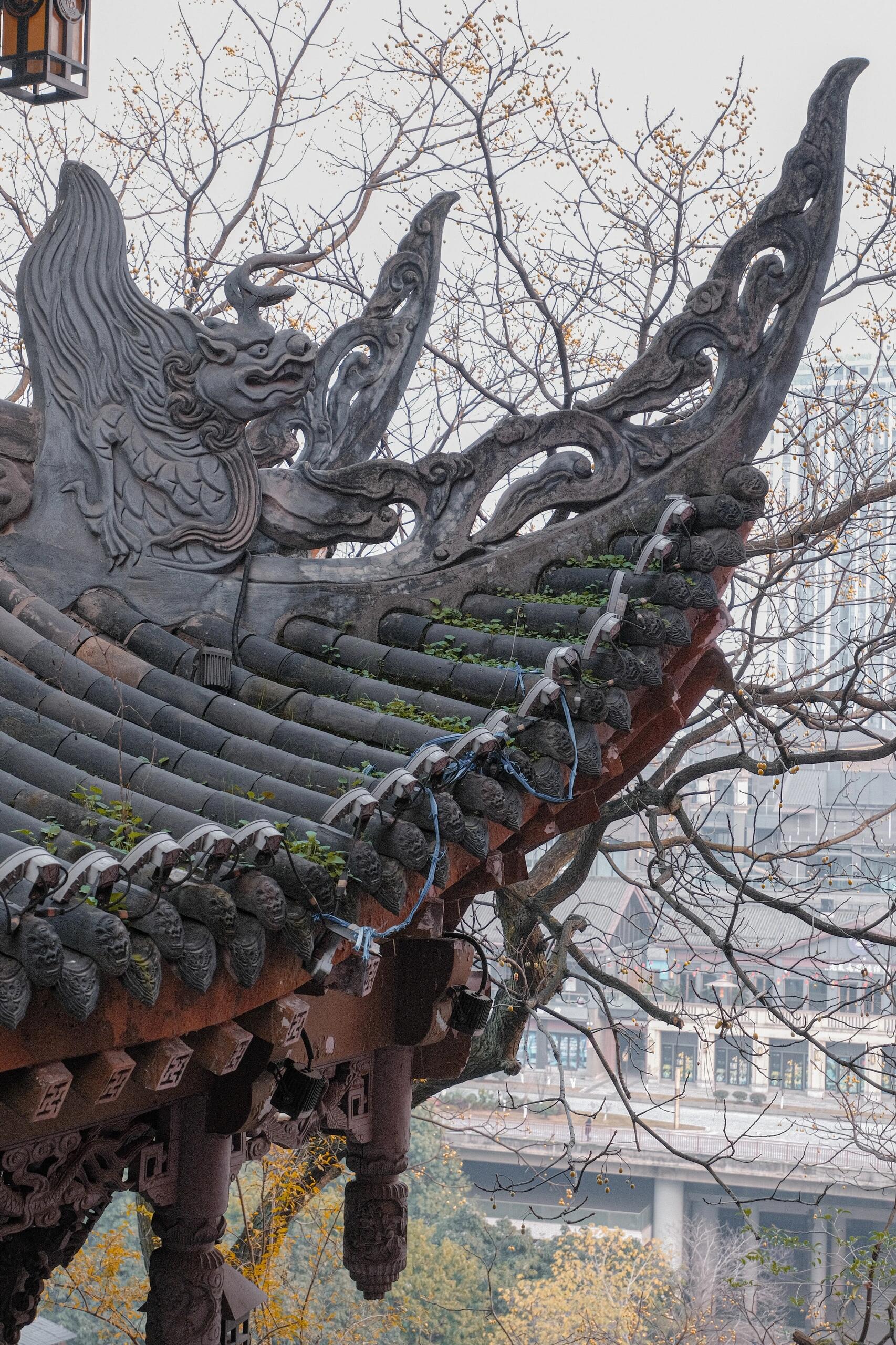 殿内供奉着几尊佛像,虽非明代原物,却依旧庄严肃穆。佛像端坐于莲台之上,神情慈悲安详,仿佛能洞察世人的心事。两侧的楹联字迹工整,寓意深远,透着浓厚的文化气息。殿内的陈设简单朴素,没有过多的华丽装饰,却更能凸显出古刹的宁静与庄严。站在殿内,仰望高大的梁架与精美的斗拱,心中满是敬畏。这座大殿历经数百年风雨,见证了磁器口从一个默默无闻的小码头发展成如今的网红古镇,也见证了重庆这座城市的兴衰变迁,它就像一位沉默的历史见证者,静静地伫立在那里,诉说着过往的故事。