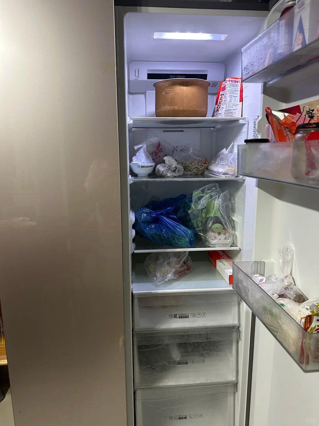 尤其是对开门中间的“搁板”,它严重限制了东西的长度,若东西长一点就无法直接放冰箱里,必需提前切割开才能放进去。