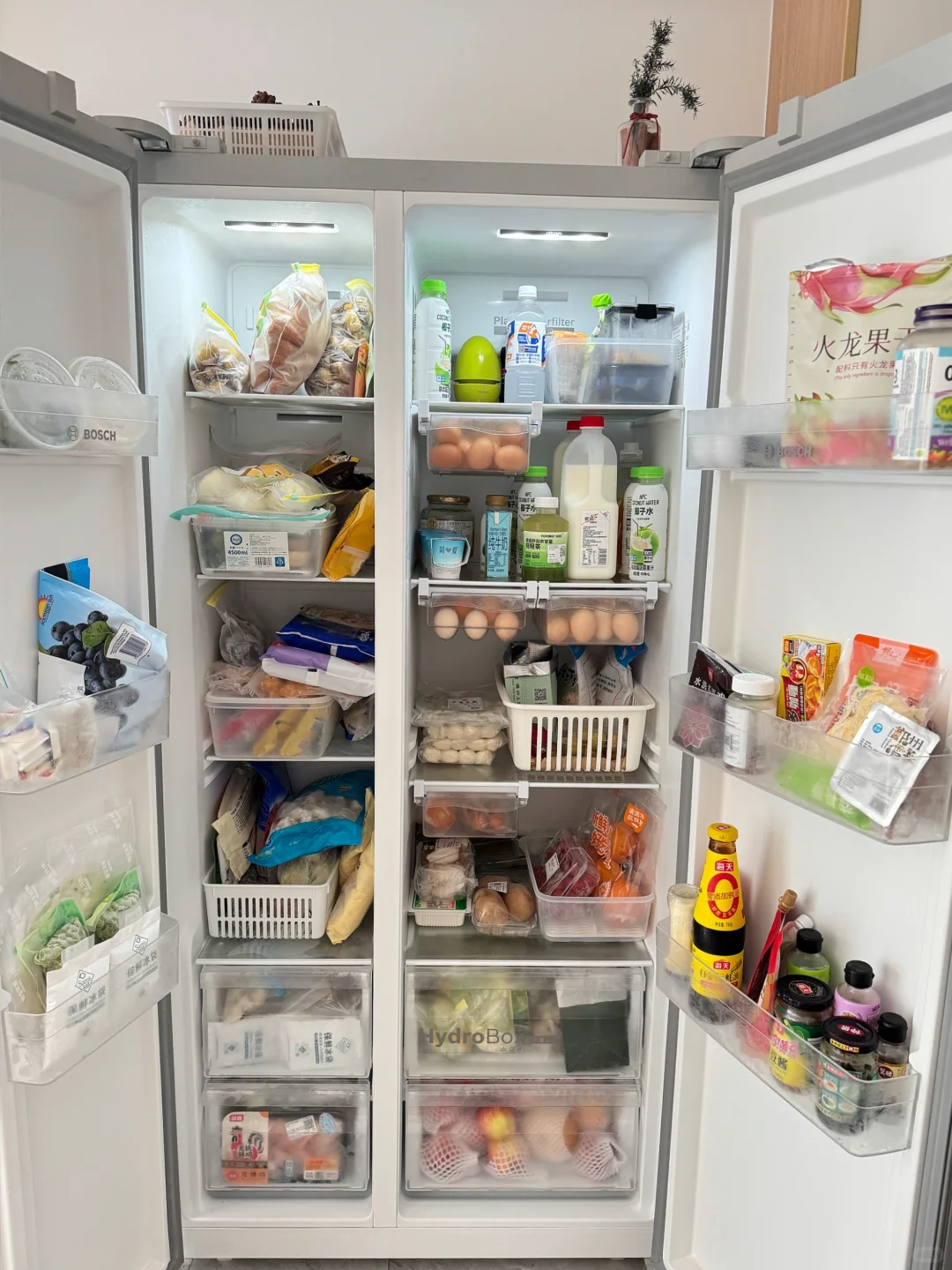 这样生熟分开,找食材一目了然,还能延长保鲜期,避免两者同处于一个空间,互相传播细菌,从而有害健康。