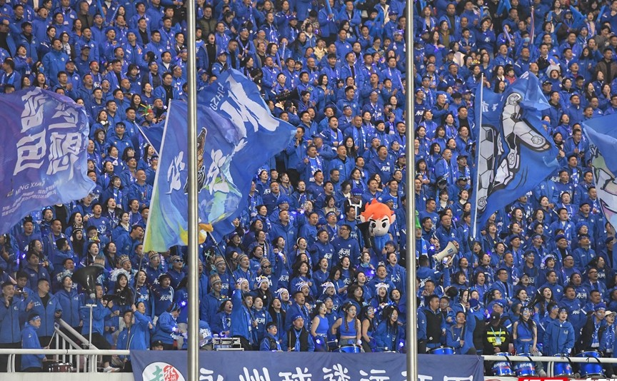 2025年12月27日晚,财信金控2025湖南省足球联赛(湘超)在长沙贺龙体育场迎来最终决战,永州队球迷现场为永州队加油助威。
