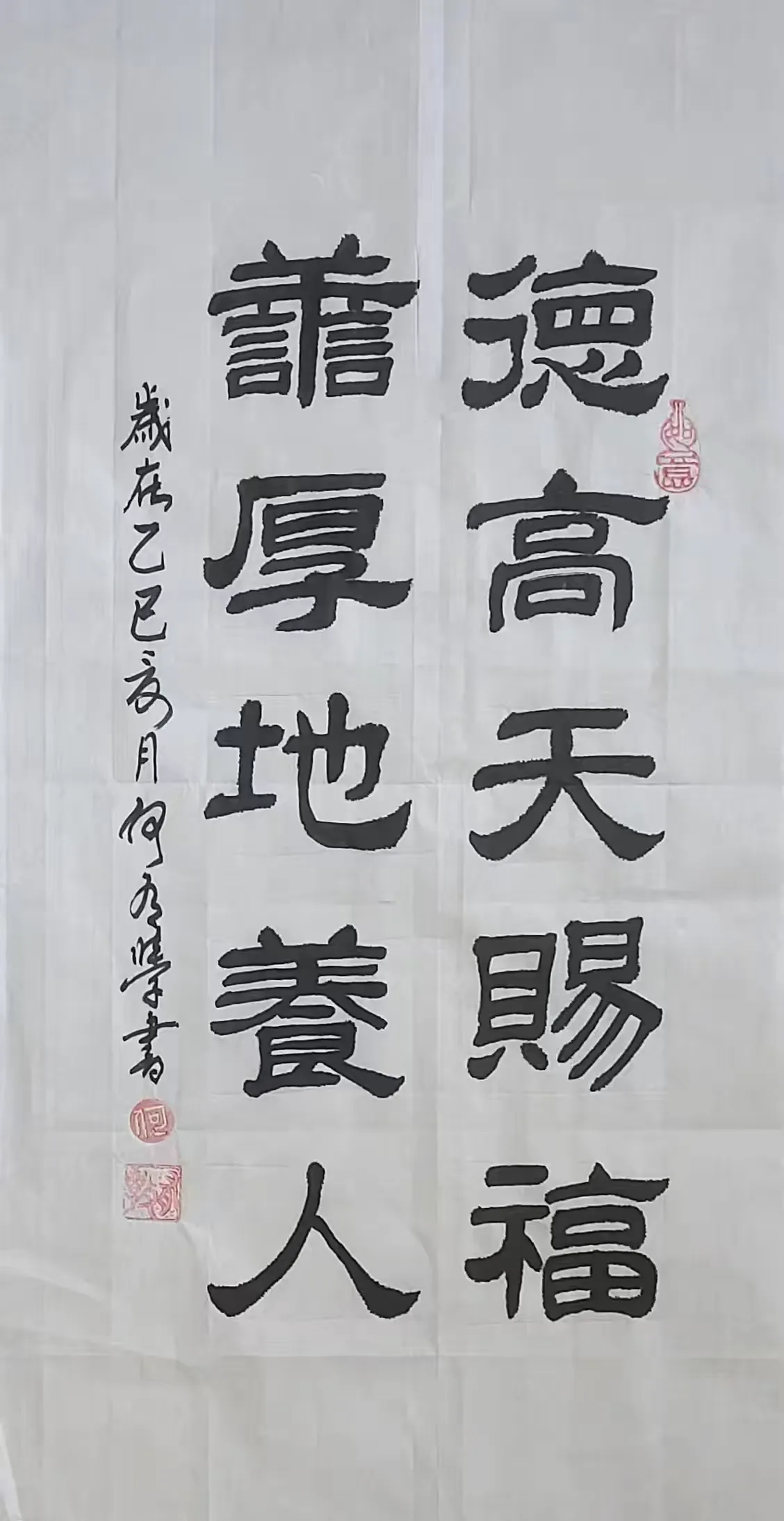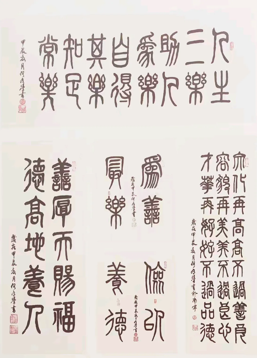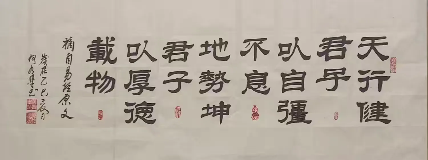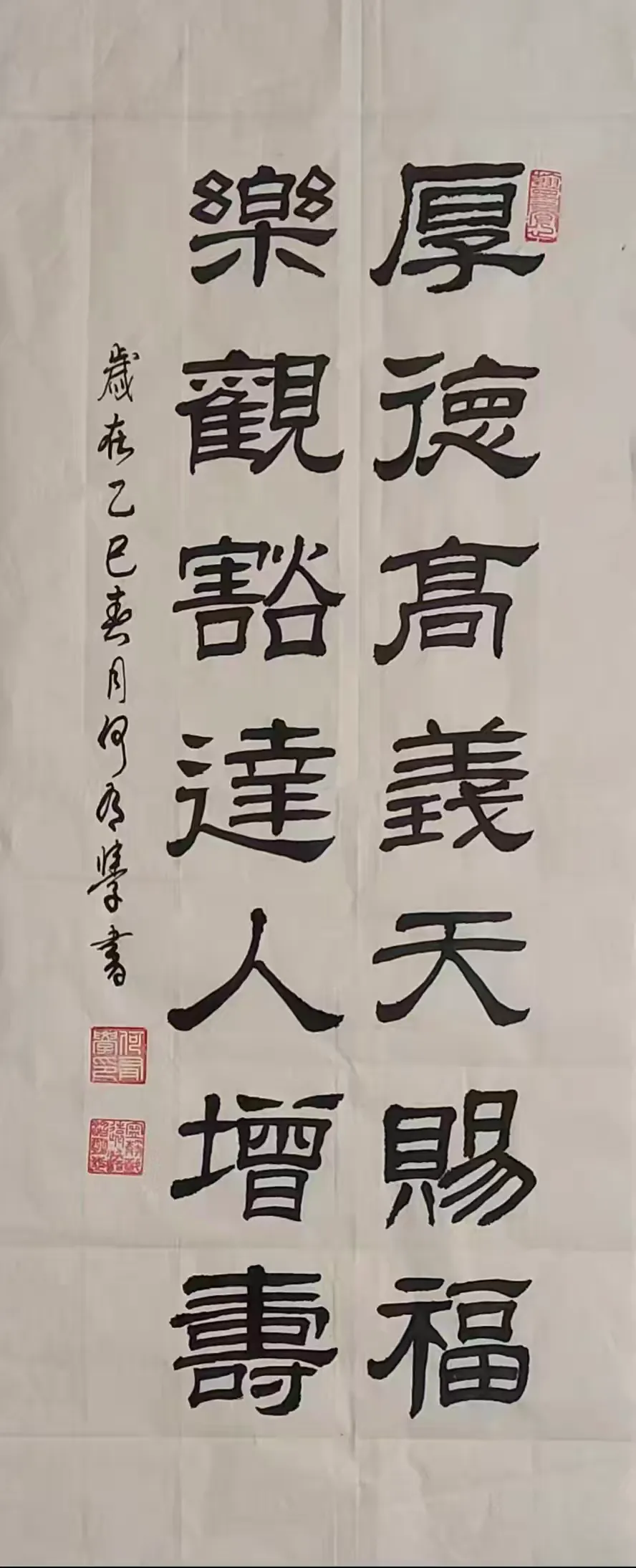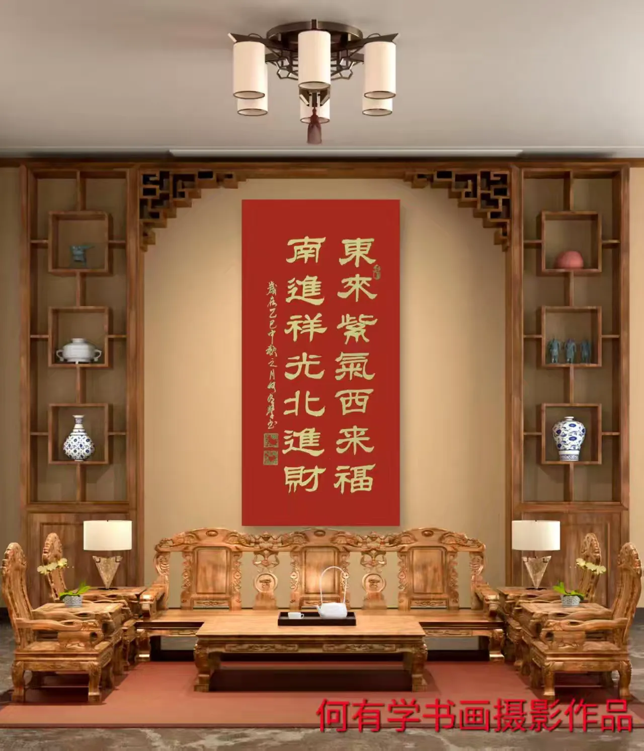 自幼酷爱书法艺术的何有学,多年笔耕不辍,擅长隶书、篆书、行草及国画创作。其作品注重人民性与民俗感的表达,风格贴近生活,兼具传统韵味与时代气息。在书法领域,他对篆书的古朴庄重、隶书的浑厚大气、行草的流畅洒脱均有深入研究;国画创作则融合传统技法与现实题材,形成独特的艺术语言。
