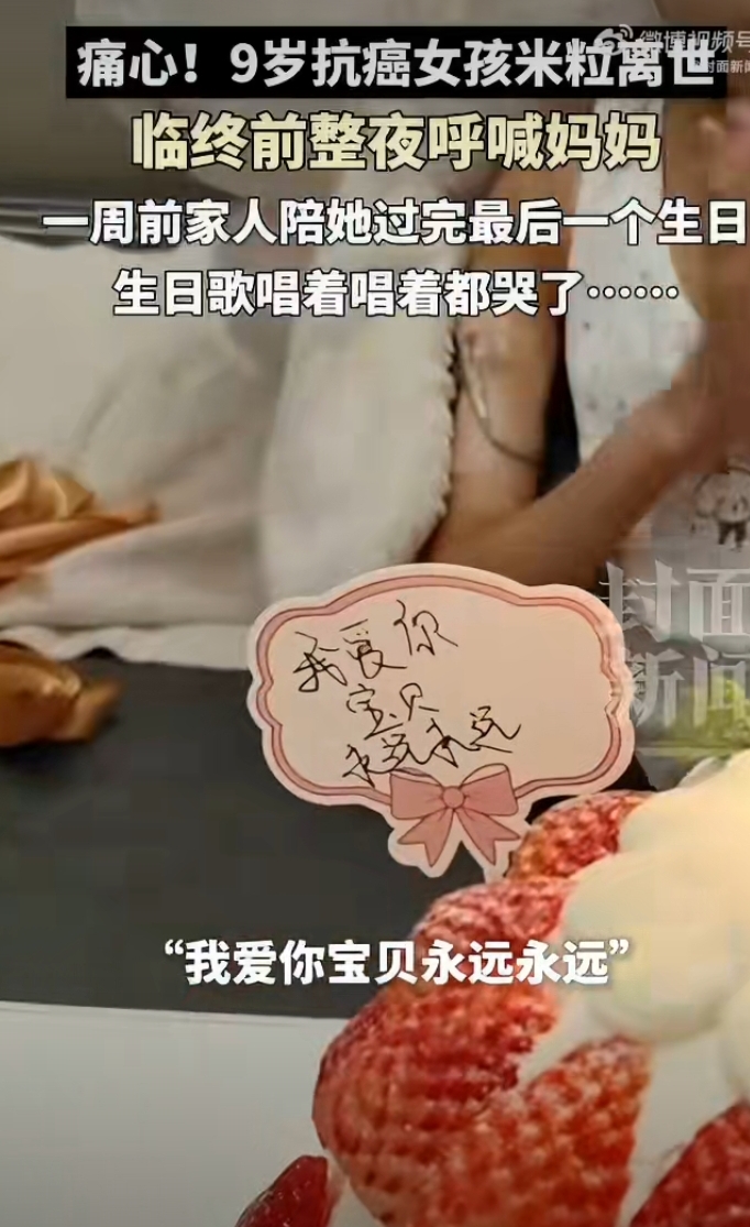 米粒才刚过完9岁生日,家人还满心盼着她能好起来,可生日之后,病情突然急剧恶化。孩子开始意识模糊、出现幻觉,对着妈妈都忍不住轻轻问:“你还是以前的那个妈妈吗?”