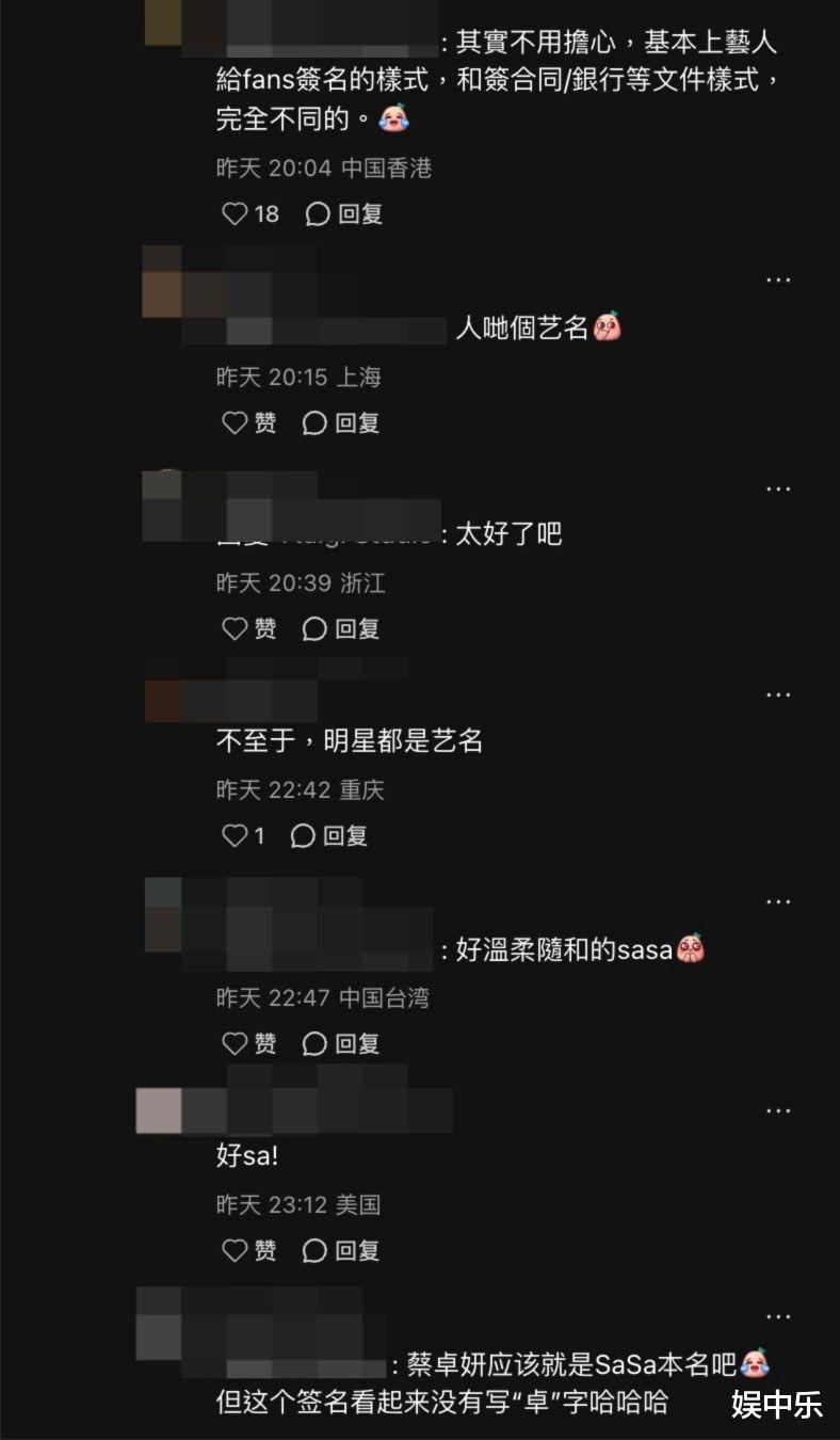 虽然阿Sa的随和性格圈粉无数,但网友还是为她捏把汗。不过也有粉丝淡定解释:“明星给粉丝的签名和正式文件签名字体差别很大,很难被滥用的。”看来阿Sa这份对粉丝的信任,倒是更显接地气了。毕竟在娱乐圈混了这么多年,还能保持这份纯粹,确实难得!