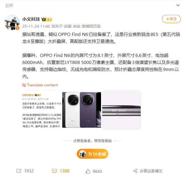 比如之前OPPO Find N5直接把厚度干到9mm内,重量也追上直板机了!接下来的OPPO Find N6也不是善茬,据说用上新一代水滴铰链,折痕可能更浅了!还有主摄升级2亿像素+多光谱传感器、电池6000mAh以上,就这苹果还能一步追上🙋♀️我是不信的!说不定,OPPO的无折痕折叠屏甚至要比苹果的提早一年到来!