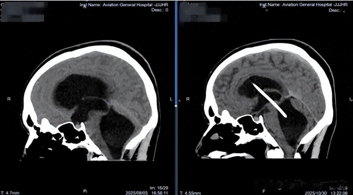 这位15岁的蒙古国男孩在出生后6个月时就被诊断为脑积水,曾在北京某医院接受脑室腹腔分流术(强生,分流末压80),术后恢复良好,发育状况与同龄儿相符。然而,在2025年8月初,男孩突然出现进行性加重的头痛,随后几天内开始频繁呕吐。