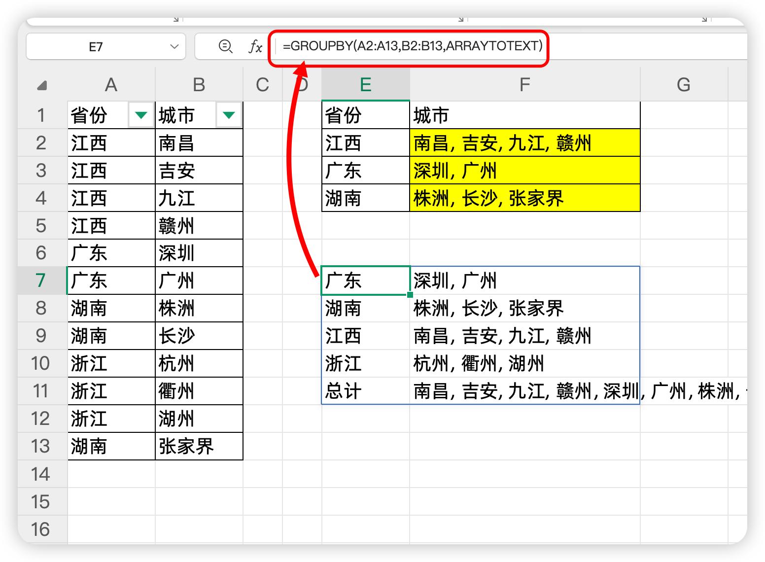 计算的方式是ARRAYTOTEXT,这种计算方式就是用逗号拼接文本