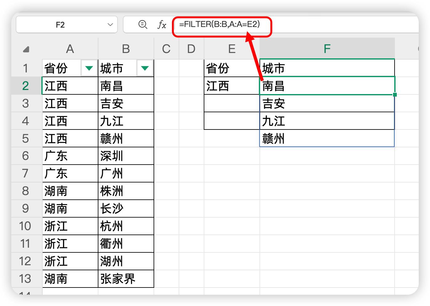 因为它筛选出来4条结果,这个公式也会得到4行结果,会自动溢出到下方的单元格