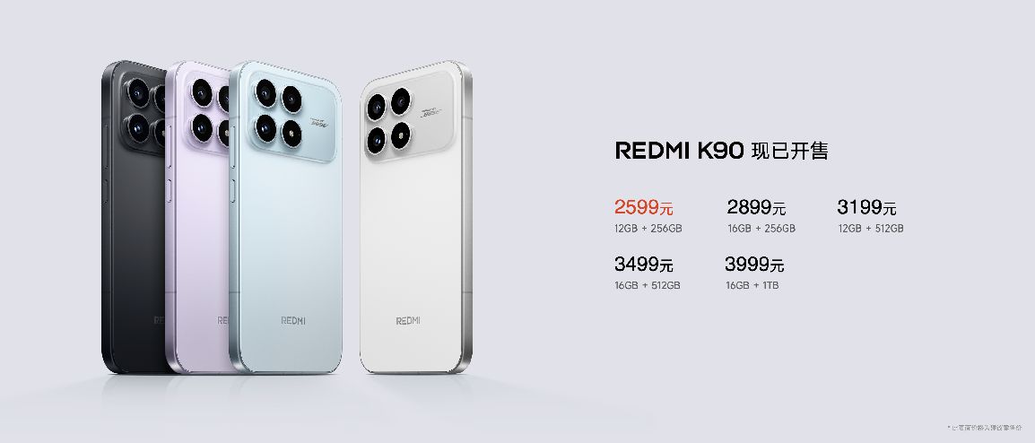 售价方面,K90 Pro Max 12GB+256GB 版本售价3999元,12GB+512GB版本售价4499元,16GB+512GB版本售价4799元,16GB+1TB版本售价5299元,K90 Pro Max冠军版16GB+1TB版本售价5499元;K90 12GB+256GB 版本售价2599元,16GB+256GB版本售价2899元,12GB+512GB版本售价3199元,16GB+512GB版本售价3499元,16GB+1TB版本售价3999元,发布后即刻开售,欢迎大家选购。