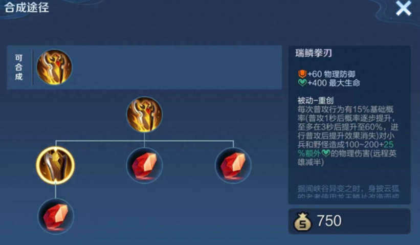 首先,我们来看看二级装备瑞鳞拳刃。这件装备虽然被动属性较为一般,只能对小兵和野怪造成额外伤害,但其基础属性却相当不错。这一特点使得它无论是对于打野英雄还是对抗路英雄,都能发挥出不错的效果。尤其是在前期,瑞鳞拳刃的额外伤害能让携带者更快地发育,为后期的强势崛起打下基础。