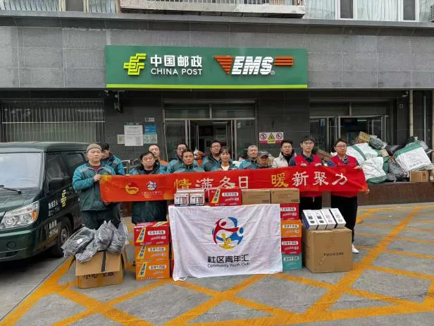 ▲八角街道杨北公益星·社区青年汇联合国网北京石景山供电公司团委慰问中国邮政快递员