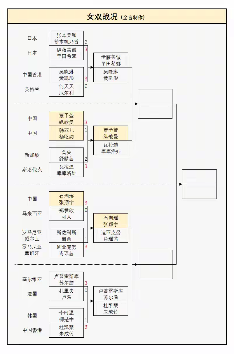 这一站国乒没有派出大阵容,只打女单和女双的比赛,但场面非常清楚: